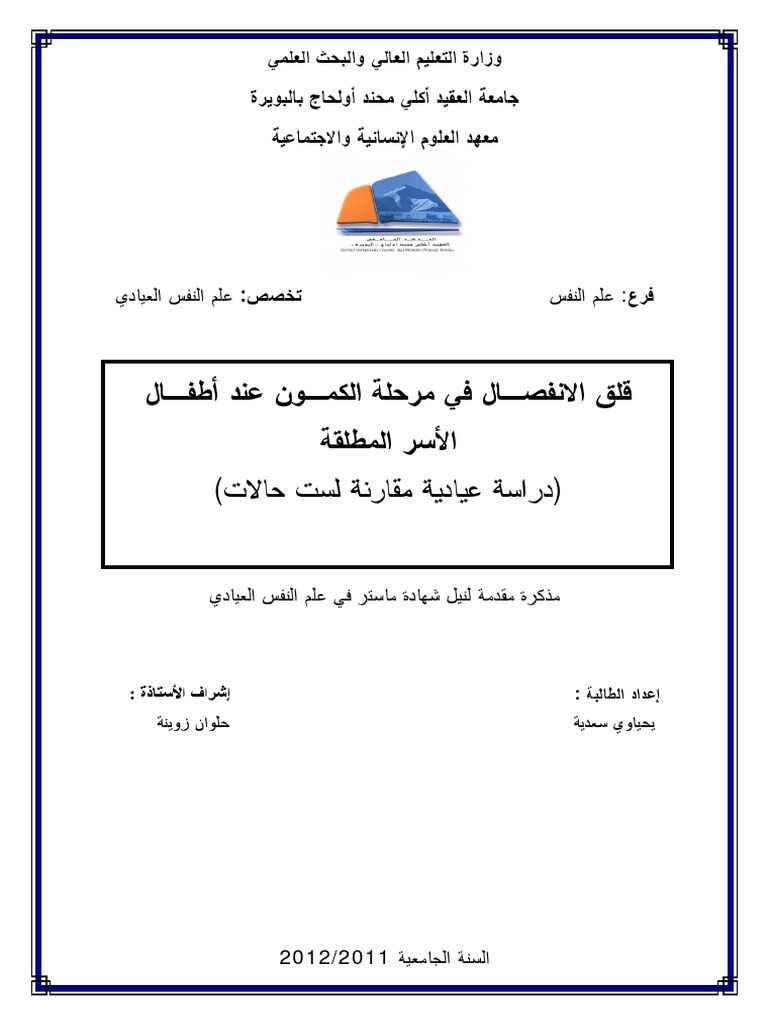 سبب نوم الولد البالغ في غرفة مستقلةعن اخوته. قلق الإنفصال في مرحلة الكمون عند أطفال الأسر المطلقة pdf